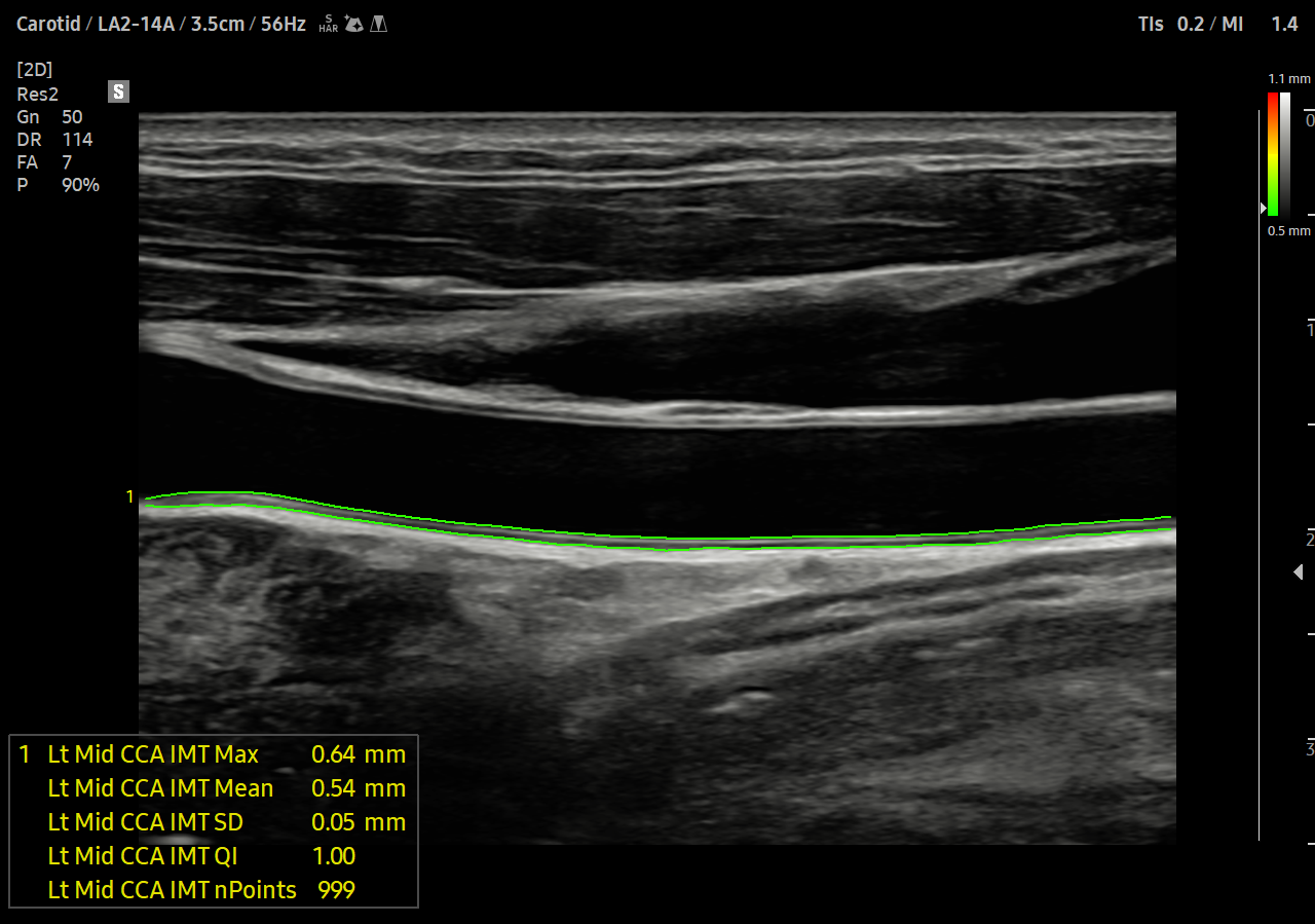 AutoIMT je screeningový nástroj pro analýzu potenciálního rizika kardiovaskulárních onemocnění pacienta. Umožňuje snadné měření tloušťky přední i zadní stěny intimy a medie krční tepny pouhým stisknutím tlačítka.