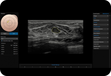 S-Detect™ for Breast analyzuje vybrané léze prsu a zobrazuje analyzovaná data s použitím systému BI-RADS ATLAS*, který poskytuje standardizované hlášení pro zefektivnění vyšetření.