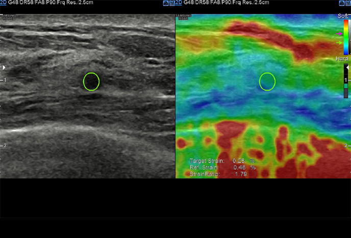 S-Shearwave Imaging ™ umožňuje neinvazivní hodnocení tuhosti tkáně / lézí v prsu a játrech, poskytnutím pokročilé úrovně diagnostických informací. Barevně mapovaný elastogram, kvantitativní měření (inkPa nebo m / s), možnost duálního zobrazení a uživatelem volitelné funkce ROI (pozice a velikost) jsou obzvláště užitečné pro přesnou diagnostiku onemocnění prsu a jater.