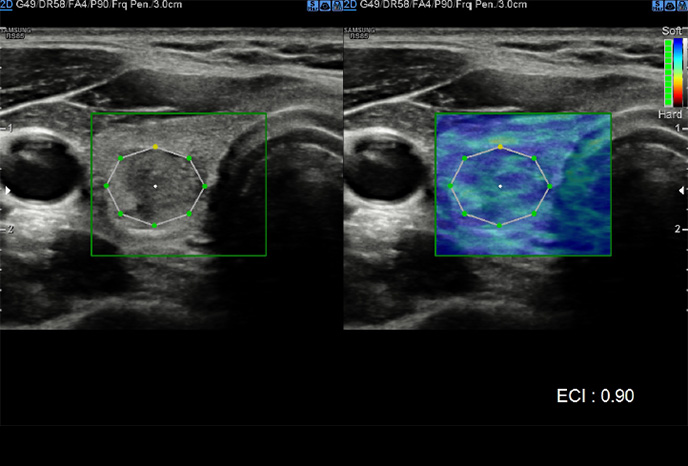 Nástroj, který analyzuje vybrané léze v ultrazvukovém vyšetření štítné žlázy a poskytuje analytická data. Poskytuje standardizovaný report založený na normách *ATA, BTA, EU-TIRADS, K-TIRADS and ACR TI-RADS a pomáhá tím zrychlit a zjednodušit pracovní postup